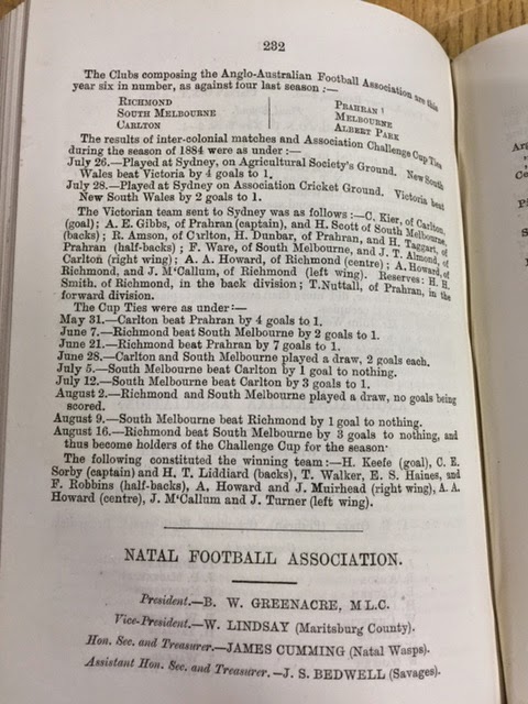 James Hothersall sent me these remarkable documents from London. They are copies from The Football Annuals of 1885 and 1886 Edited by Charles Alcock and Published by Wight & co. They give details I haven't yet found from Australian sources about players and officials. I have calculated years and put them above the document in question.